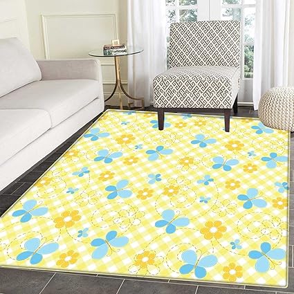Amazon Com Checkered Area Rug Carpet Kids Pattern With Daisy