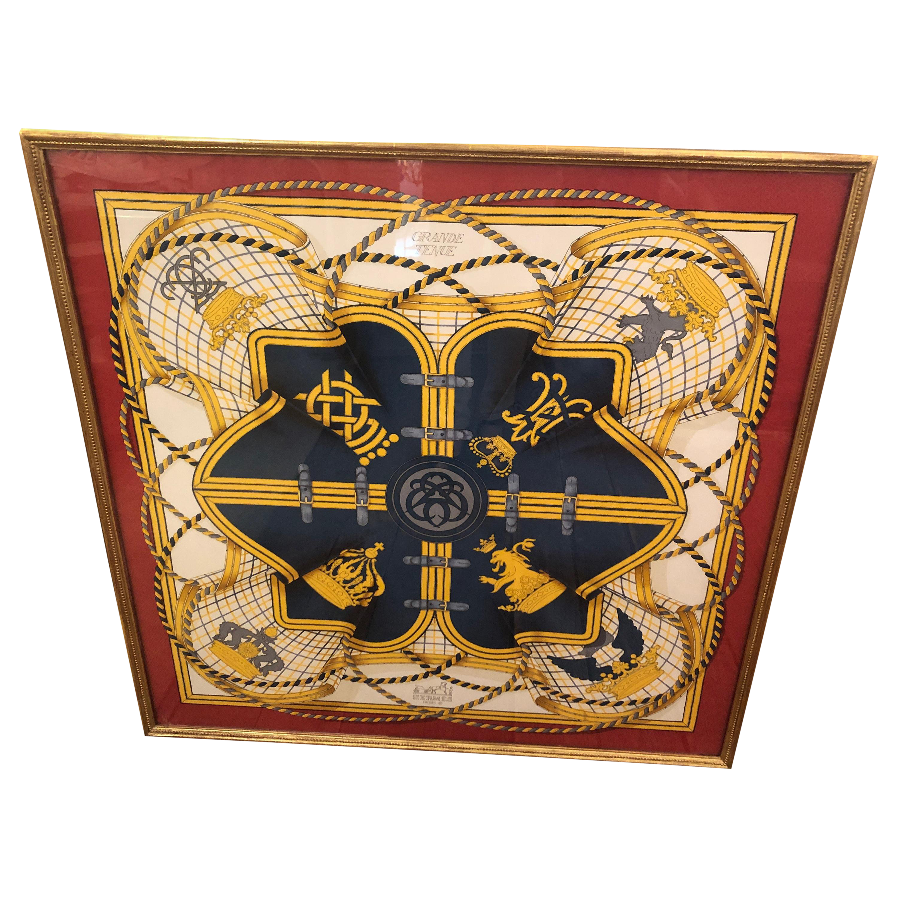 Framed Red Gold And Blue Hermes Scarf Wall Art Chairish
