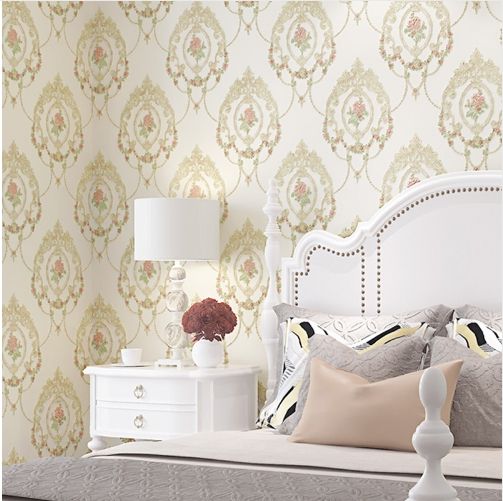 Bedroom Wallpaper Non Woven Fabric Beige White Blue Pink Textured