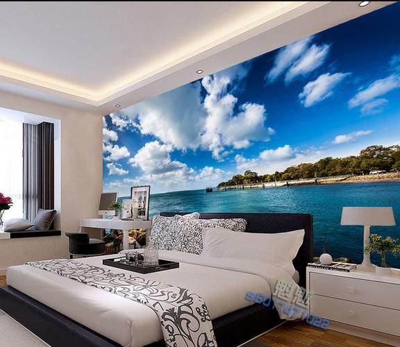 Clear Sky Blue Sky White Clouds Blue Sea Landscape Mural