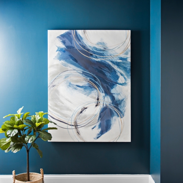 Original Art Abstract Painting Navy Blue Light Blue Coastal Wall