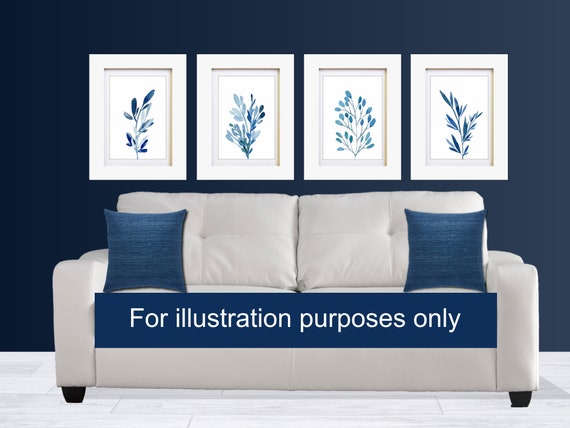 3pc Blue Wall Art Navy Wall Art Blue Wall Prints Botanical