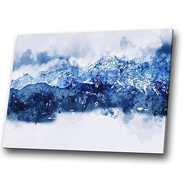 Blue White Navy Mountains Modern Abstract Canvas Wall Art Large