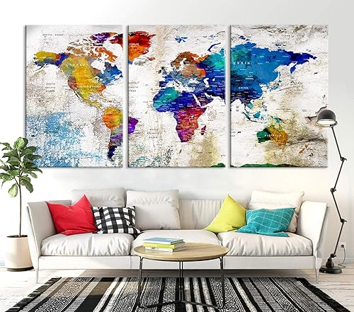 Amazon Com 60x30 Inches Large Wall Art Push Pin World Map Canvas