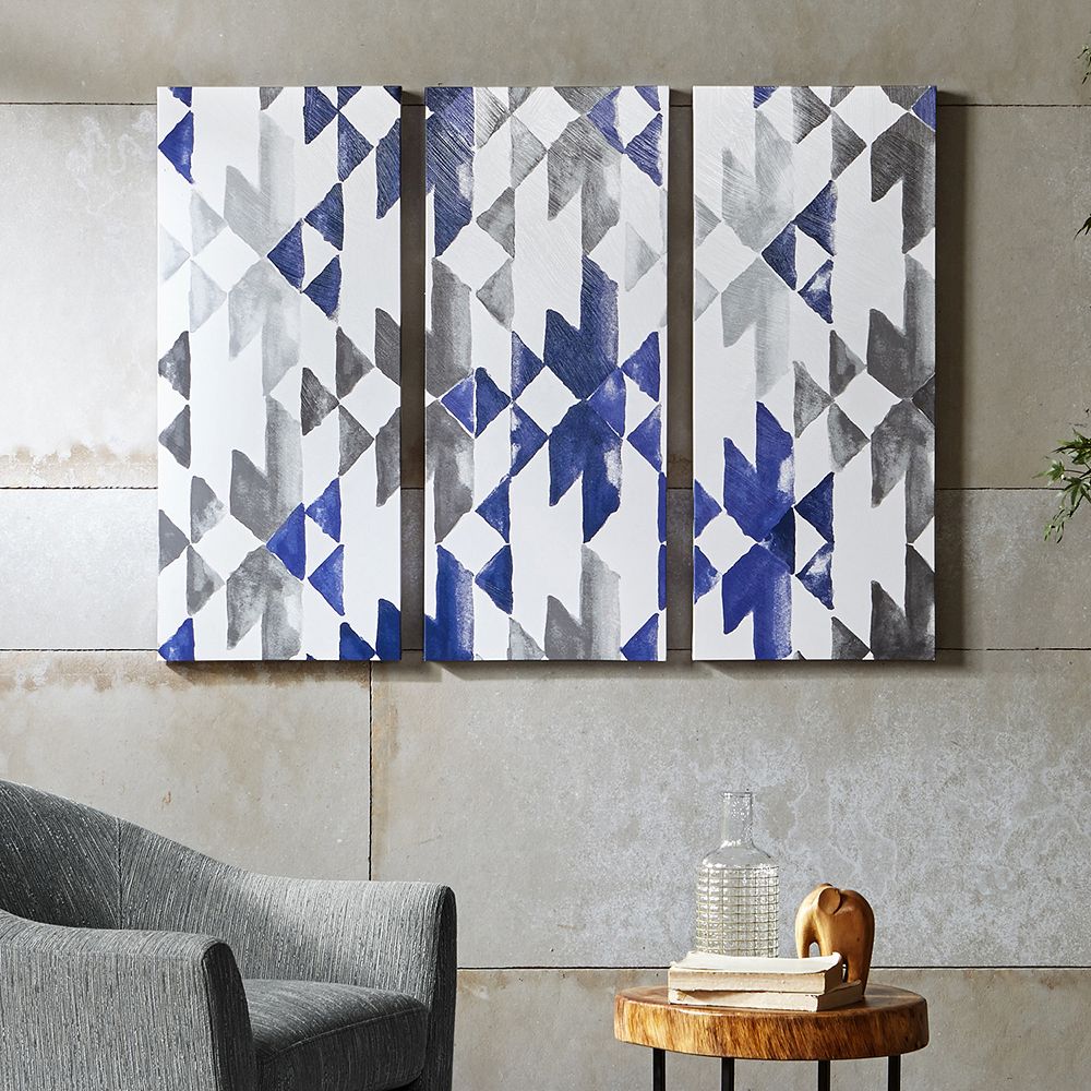 Ink Ivy Navy Sierra Canvas Wall Art 3 Piece Set