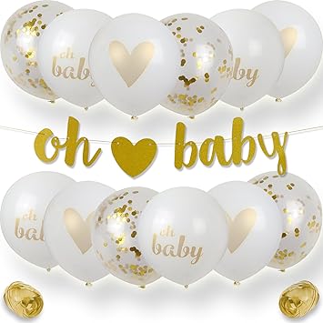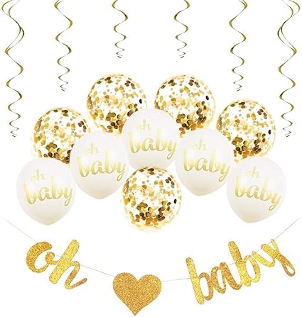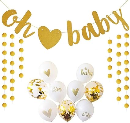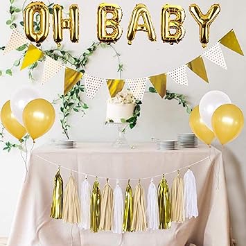 Amazons choice for baby shower decorations pllieay 1 piece baby shower bunting banner and mummy to be sash for baby shower party decoration. 44 out of 5 stars 15. Oh baby mylar letter balloon white round paper lanterns tissue tassel banner glitter garland party balloon for girls baby shower 1st birthday party.