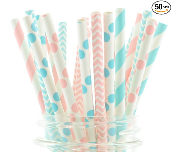Amazon Com Baby Shower Straws 50 Pack Boy Girl Gender Baby