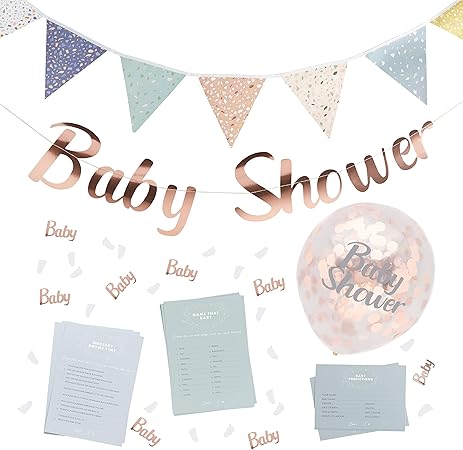 Get it as soon as wed feb 5. 39 out of 5 stars 6. Rose gold baby shower decorations set with balloons mum to be sash prediction cards and table decor unisex.