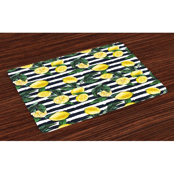 Modern Placemats Set Of 4 Refreshing Lemons On Horizontal Striped