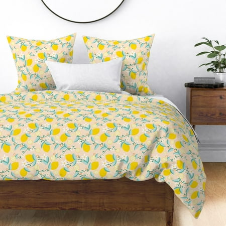 Lemon Modern Kitchen Decor Fabrics Tree Fruit Sateen Duvet Cover