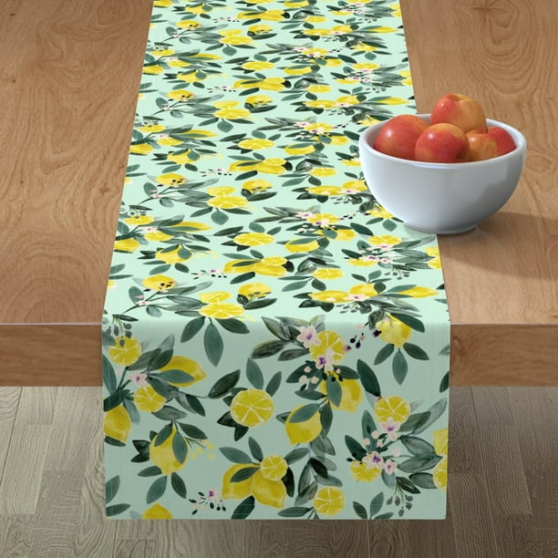 Table Runner Lemon Modern Kitchen Decor Fabrics Tree Fruit Citrus