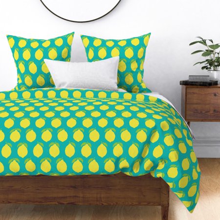 Bright Lemon Pop Mod Fruit Modern Kitchen Decor Sateen Duvet Cover