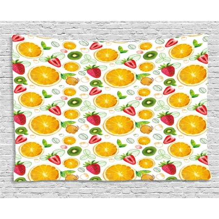 Fruits Tapestry Citrus Kiwi Lemon Leaves Apricot Watermelon Fresh
