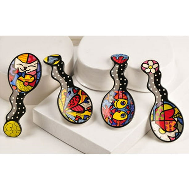 New Romero Britto Spoon Rest Cat Heart Fish Apple Art Spoonrest