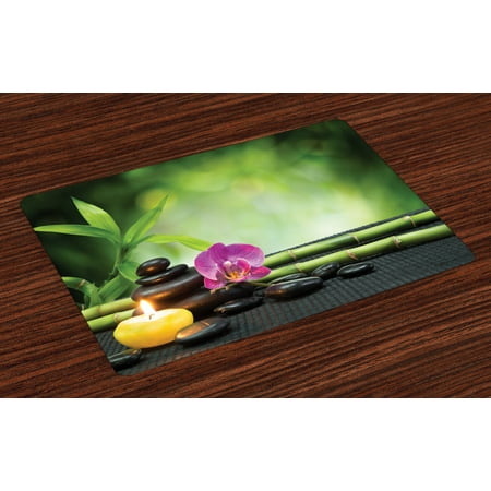 Spa Placemats Set Of 4 Orchid Bamboo Stems Chakra Stones Japanese