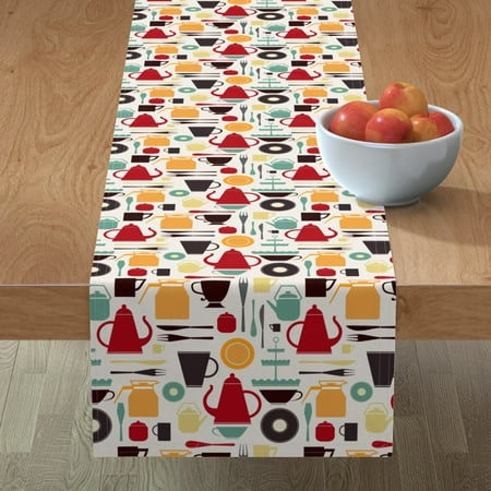 Table Runner Retro Kitchen Utensils Coffee Decor Vintage Cotton