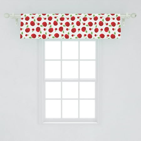 Apple Window Valance Vivid Colored Cartoon Style Ripe Red Apples